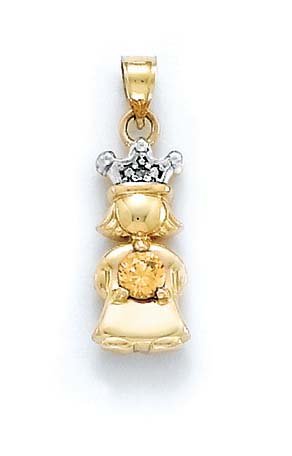 14k Diamond and Citrine-Yellow Birthstone Princess Pendant - .01 Carat Diamond Weight in 14k Yellow Gold - Genuine Diamonds with Synthetic Birthstone - 1 inch long - JewelryWeb Style: CCP15530NC - FREE gift-ready jewelry box