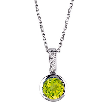 14k White Gold Round Peridot Diamond Pendant Necklace - an August Birthstone Overview