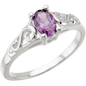 February 14K White Gold Teen Imitation Birthstone Ring Overview