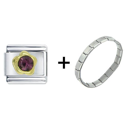 Together with a stainless steel starter to match your Itallian charm bracelet. Show off your personality, hobbies, or significant affiliations with this Pugster February Birthstone Flower Italian charm. This birthstone charm features a purple, amethyst colored rhinestone embedded in a gold plated flower, representing February births. Crafted of the finest stainless steel with soldered faces (as opposed to less durable glue), these charms are sure to be a hit as you build your Italian charm bracelet or anklet. You can build your bracelet all at once, or gradually over the years. Either way, these bracelets are a great way to express your enduring values and style. Also a great gift for astrological enthusiasts. Crafted and authenticated by Pugster (TM) Inc., these February Birthstone Flower Italian charms are available for both retail and wholesale purchase in our store and are compatible