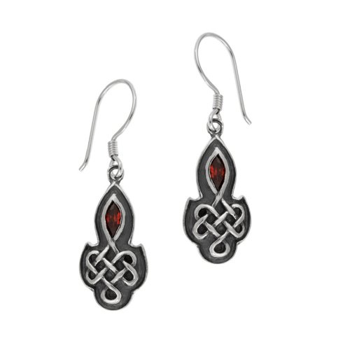 Sterling Silver January Birthstone Celtic Knot w/ Genuine Garnet Earrings Feature