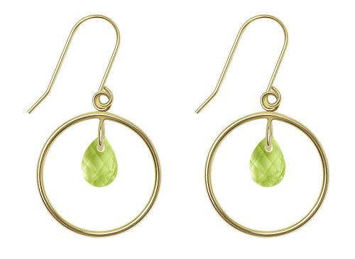 August's birthstone adds a bright touch to these stylish open circle dangle earrings. Pear-shaped briolettes of golden-green peridot dangle inside the open circles, which present on classic curved ear wires. Crafted from polished 10 karat yellow gold, this fashionable pair makes a perfect gift for someone with an August birthday.