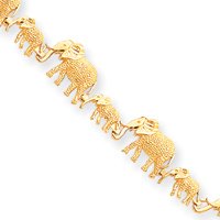 14k D-Cut Medium March Birthstone Elephants Bracelet -7 Inch - Lobster Claw - 6.5 Grams in 14k Yellow Gold - - Product Attributes: - Lobster Claw Closure -- Open back -- Polished -- Solid - - JewelryWeb Style: QTB44940Y - FREE gift-ready jewelry box