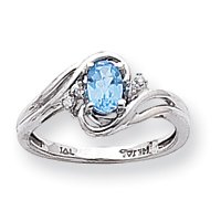 14k White Gold .05ct Diamond and Blue Topaz Birthstone Ring - .05 Carat Diamond Weight in 14k White Gold - - Product Attributes: - Blue topaz -- Diamond -- Genuine -- Polished - - JewelryWeb Style: QTR46416W - FREE gift-ready jewelry box