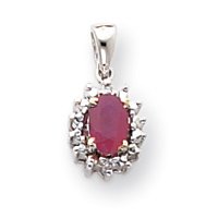 14k White Gold Diamond and Ruby Birthstone Pendant - .02 Carat Diamond Weight in 14k White Gold - - Product Attributes: - Diamond -- Genuine -- Ruby -- Polished - - JewelryWeb Style: QTP46027NC - FREE gift-ready jewelry box