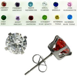 316L Stainless Surgical Steel Earrings - Birthstone CZ Stud Earrings - 8mm Overview