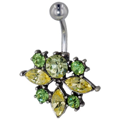 Belly Navel Rings Green Yellow Crystal Cluster Flower Birthstones Jewelry Overview
