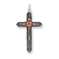 Sterling Silver Synthetic July Birthstone Cross Charm - in Sterling Silver - - Product Attributes: - Glass -- Antique finish -- Flat back - - JewelryWeb Style: QTC81435NC - FREE gift-ready jewelry box