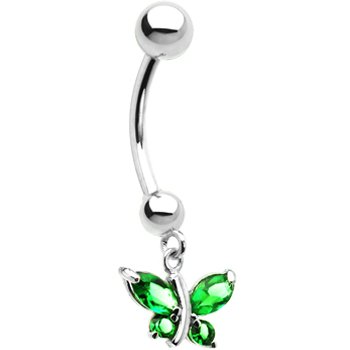 14K White Gold Butterfly May Birthstone Belly Ring Overview